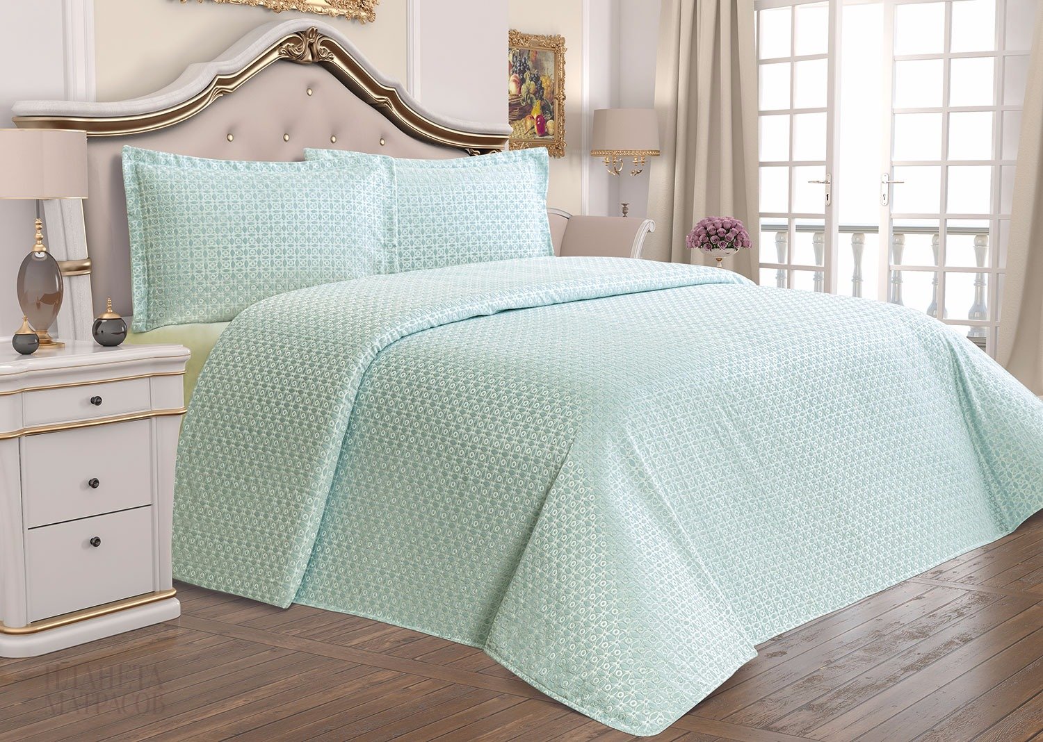 покрывало с наволочками Tropik home Покрывало 220х230 с наволочками 50х70 AMORE MINT